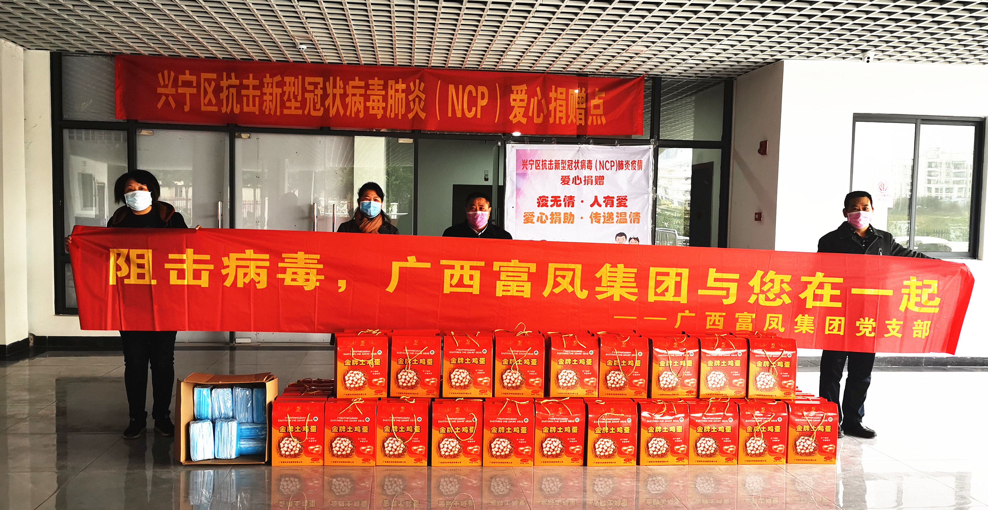 ▲2月19日,麻豆乱码国产一区二区三区集團黨支部書記蒙剛代表集團向南寧市興寧區慈善會捐贈4800枚雞蛋和疫情防護物資500隻口罩。