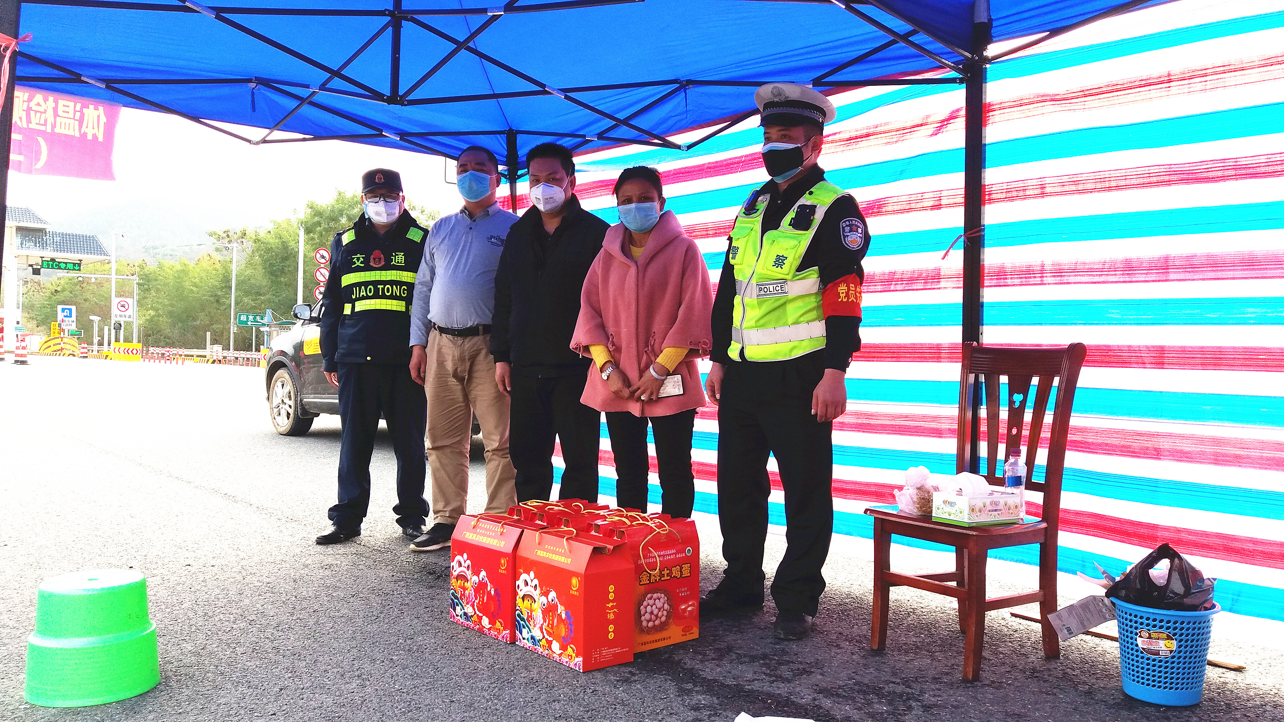 ▲2月6日,麻豆乱码国产一区二区三区集團陸海英總經理代表集團慰問平果縣坡造高速路口和平果縣四塘高速路口疫情防控一線人員。