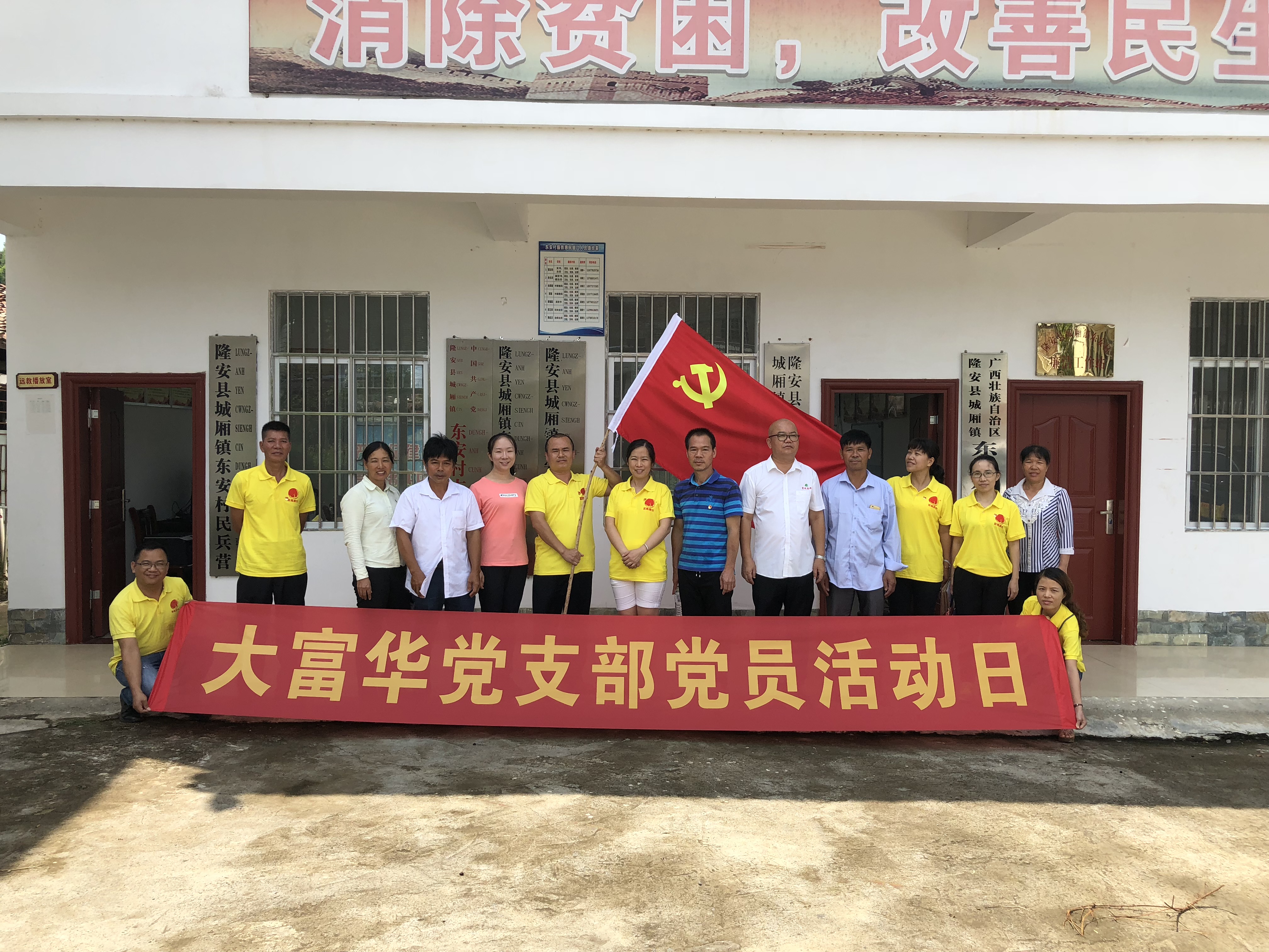 多年以來,大富華黨支部在兩新組織黨建工作示範點創建活動中,以“黨建聯盟”的形式,先後與東安村黨支部、東信村黨支部結對共建,開展“黨旗領航·同心工程”、“村企聯姻·產業富民”、“扶貧扶智·愛心助學”活動,充分發揮黨組織戰鬥堡壘作用和黨員先鋒模範作用,結合企業產業和技術優勢,打造產業示範基地,勇擔社會責任,助農增收。