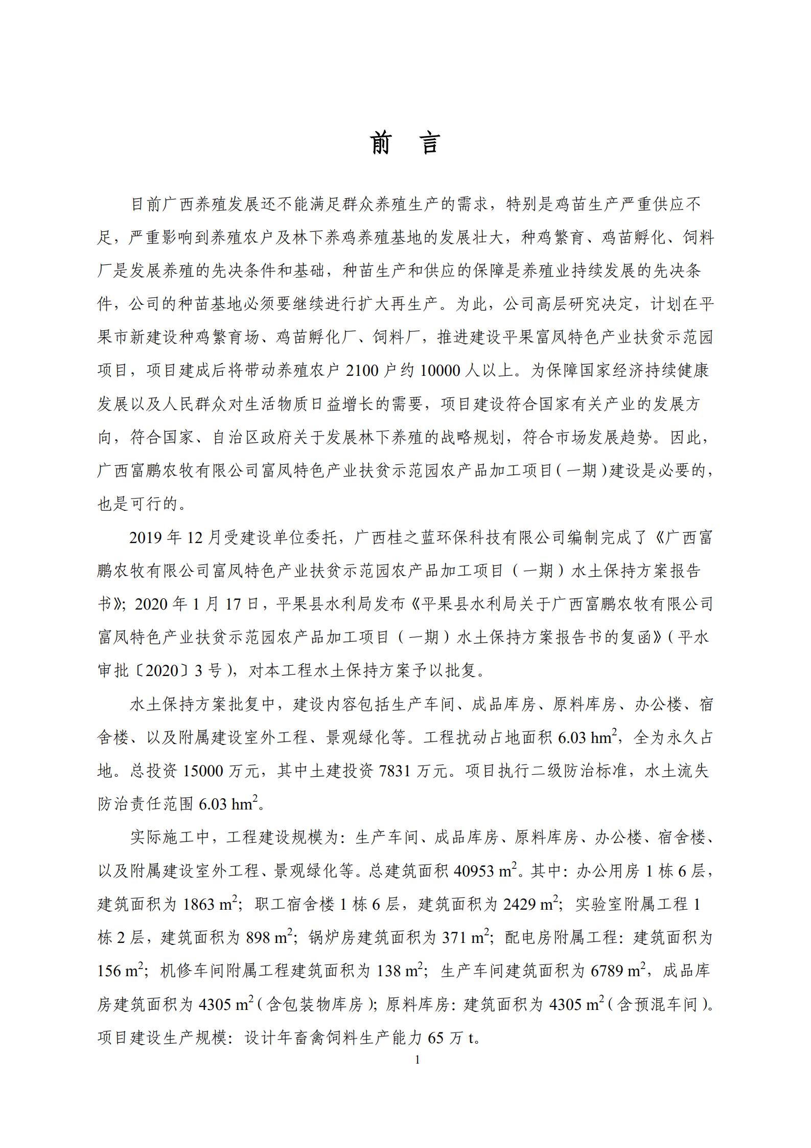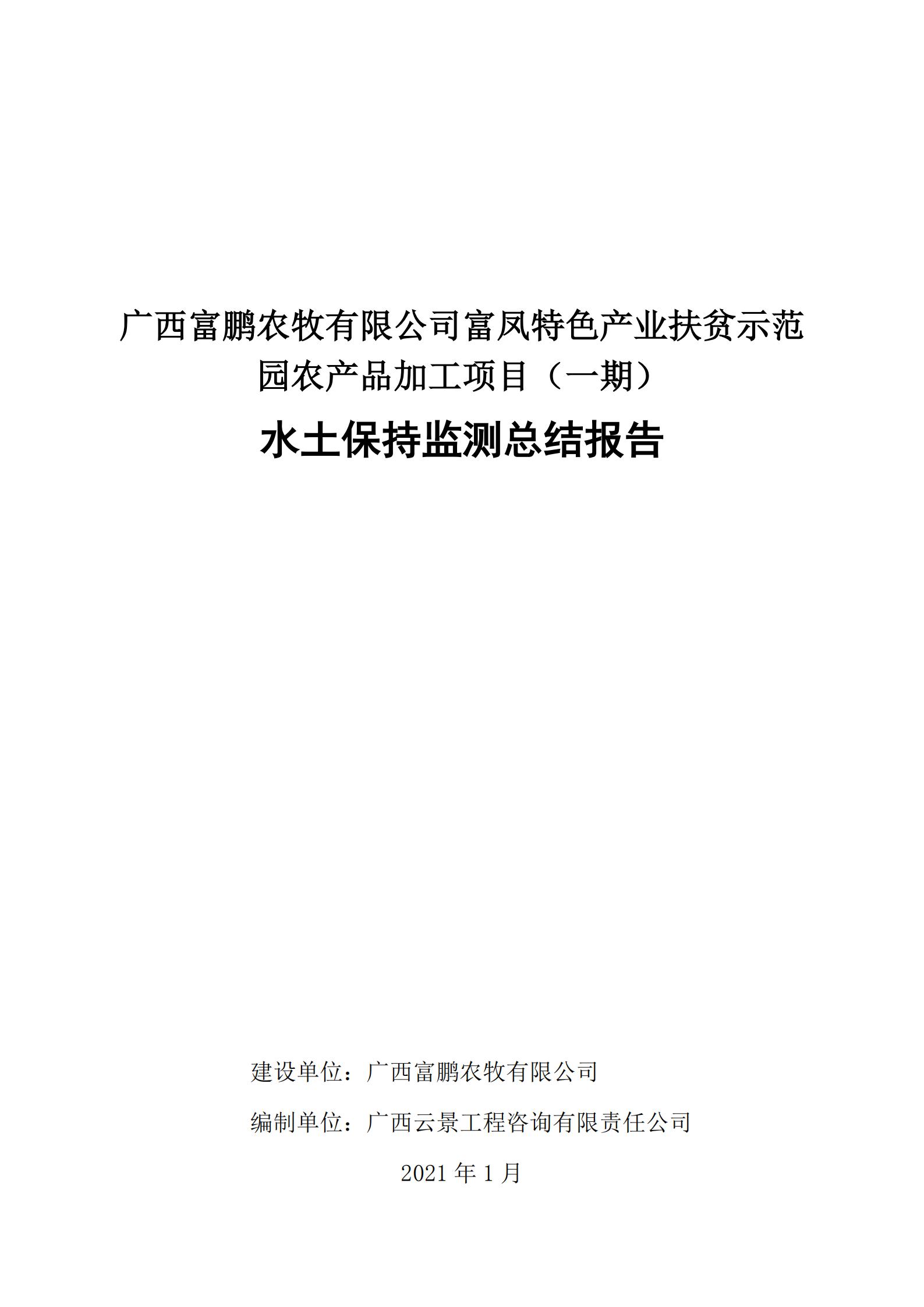 廣西富鵬農牧有限公司麻豆乱码国产一区二区三区特色產業扶貧示範園農麻豆人妻少妇精品无码加工項目(一期)水土保持監測總結報告