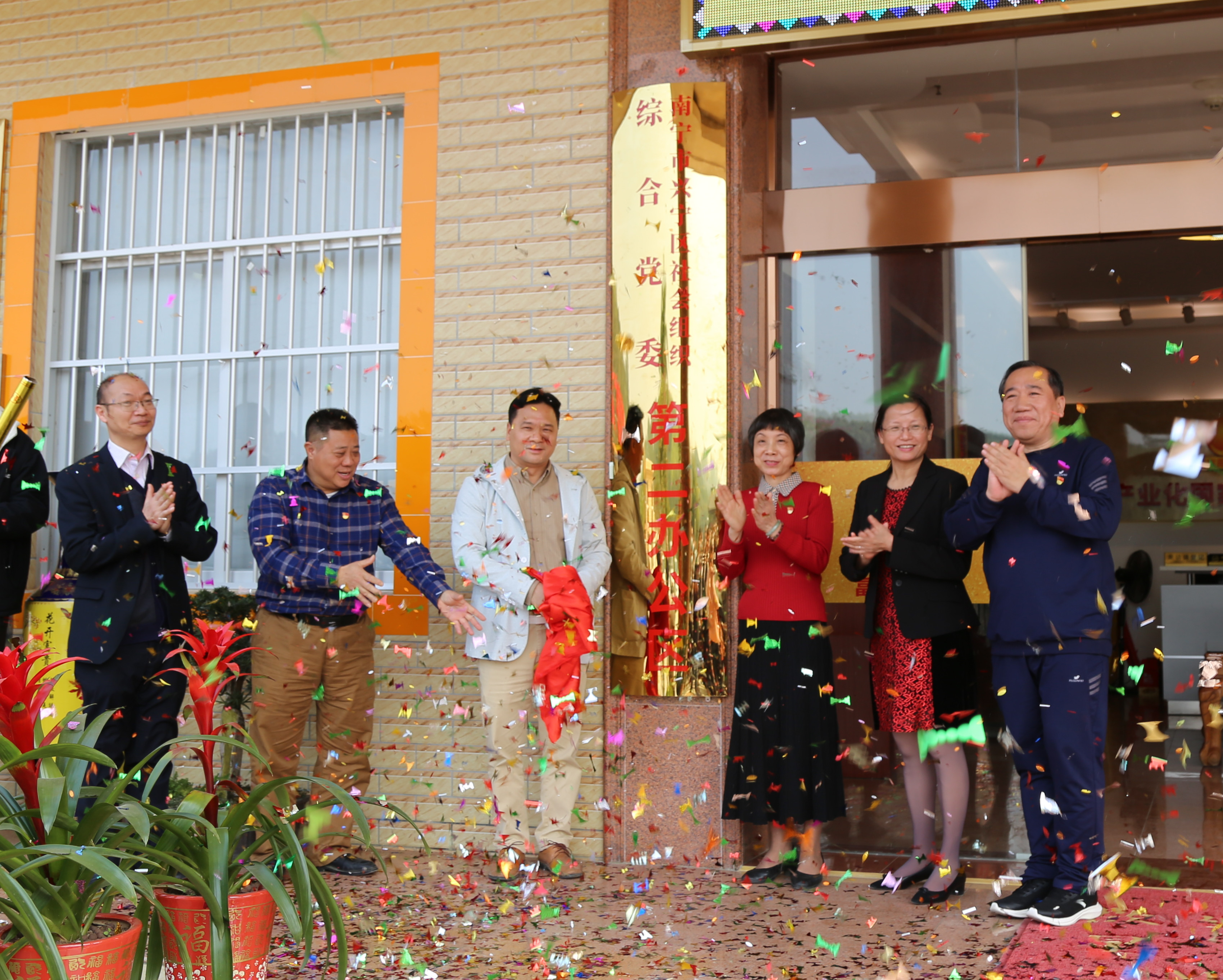 ▲南寧市社會組織綜合黨委專職副書記何文,中共南寧市興寧區委統戰部副部長、工商聯黨組書記兼興寧區兩新組織黨工委副書記羅佳,南寧市興寧區僑聯主席李梅,興寧區社會組織綜合黨委副書記鍾健、麻豆乱码国产一区二区三区集團李非董事長共同為南寧市興寧區社會組織綜合黨委第二辦公區揭牌