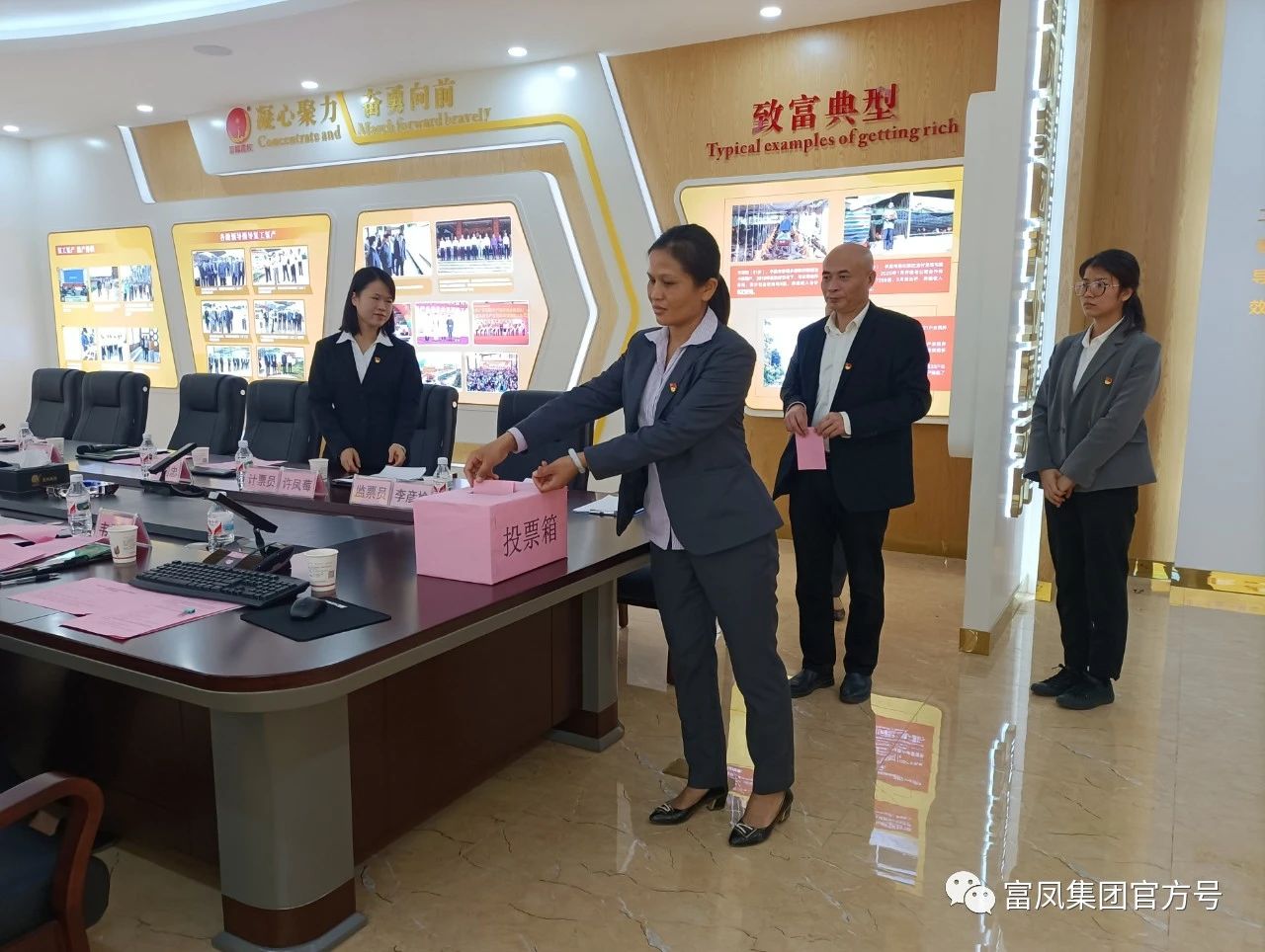 揭牌儀式後,廣西富鵬農牧有限公司黨支部召開第一次全體黨員會議,通過無記名投票選舉養殖事業部總經理陸海英為支部書記,項目部總監廖克頌為宣傳委員,采購部許玉蓮經理為組織委員。